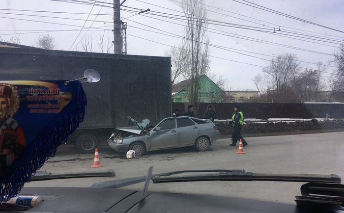 На улице Аустрина в Пензе ВАЗ-2112 влетел под грузовик. Фото