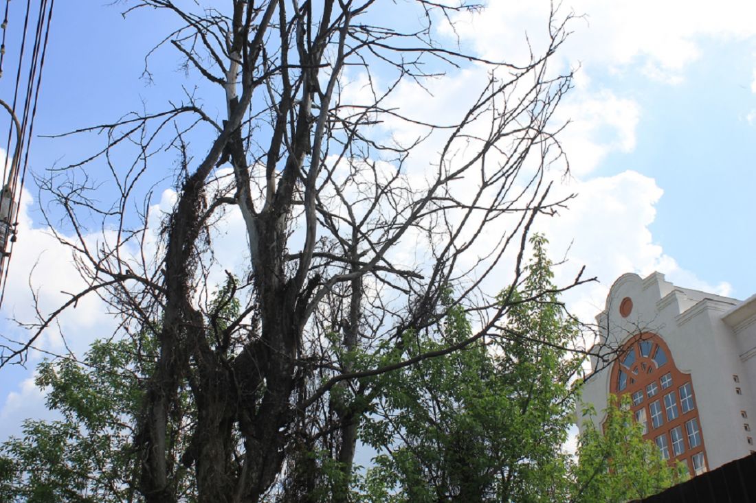 Это такой растительный вариант Ждуна. Еще неизвестно, что произойдет быстрее – развалится заброшенная высотка или полностью засохнет дерево.