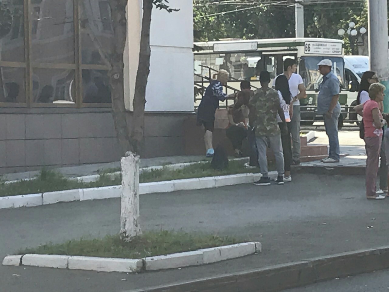 На фото, присланном очевидцем видно, что одному человеку оказывают помощь прямо на ступеньках близлежащего кафе. Автор фото также сообщил, что видел лежащую на проезжей части женщину, но не понял, в каком состоянии она находится.