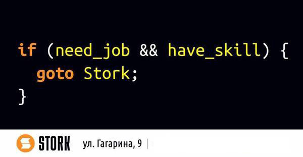 Поводом для рассмотрения столь курьезного судебного дела стала жалоба Федеральной антимонопольной службы относительно объявления, которое было размещено напротив университета в Орле. Компания, занимающаяся разработкой программного обеспечения, разместила объявление о поиске новых сотрудниках, стилизовав его под строчку кода, написанного на языке программирования «C». Дословно написанное можно интерпритировать так: «Если вам нужна работа и у вас есть опыт, приходите в «Stork».