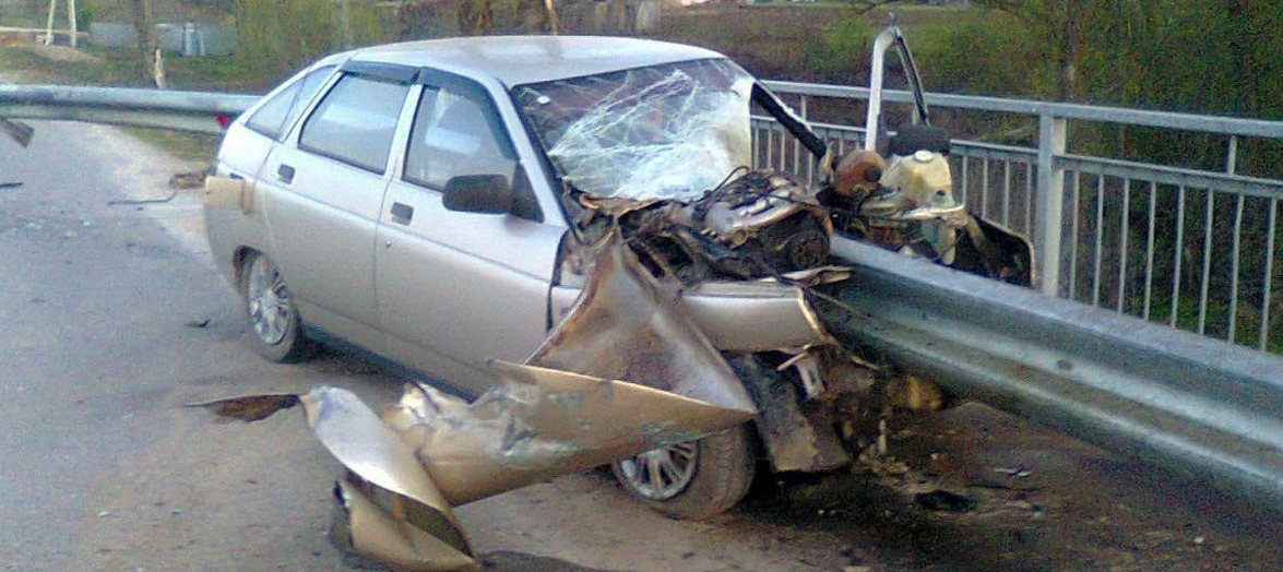 «ВАЗ-2112» на высокой скорости въехал в дорожное ограждение.