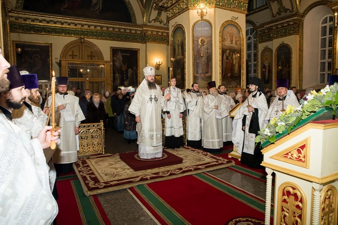 В канун праздника митрополит Серафим совершил всенощное бдение в Успенском кафедральном соборе.