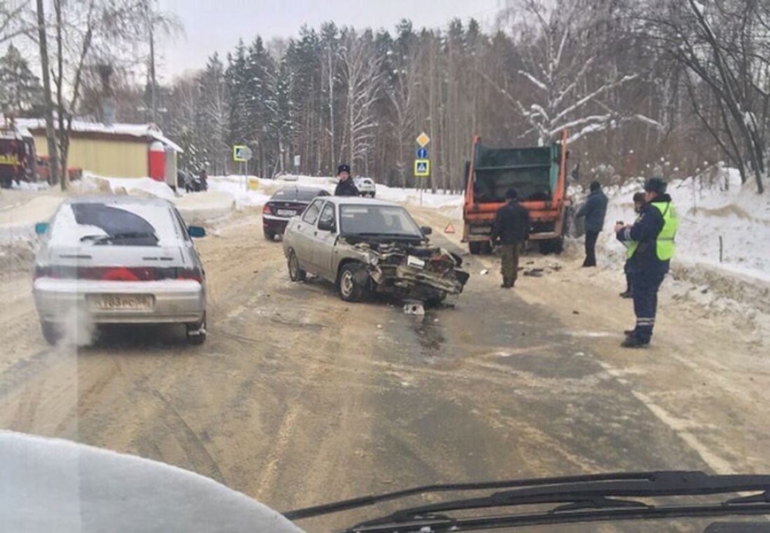 В Заречном сегодня днем столкнулись мусоровоз и «ВАЗ-2110». В результате дорожно-транспортного происшествия обошлось без жертв, а вот «десятка» получила весомые механические повреждения.