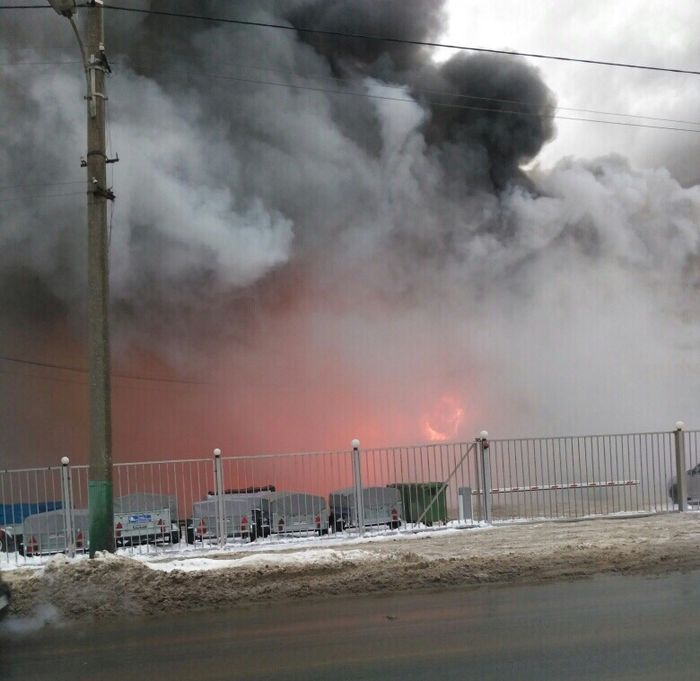 Журналист портала ведет эксклюзивный репортаж с места возгорания автосалона Клаксон в Пензе.