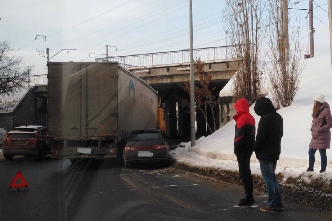 В Пензе под мостом легковушка «залезла» под фуру