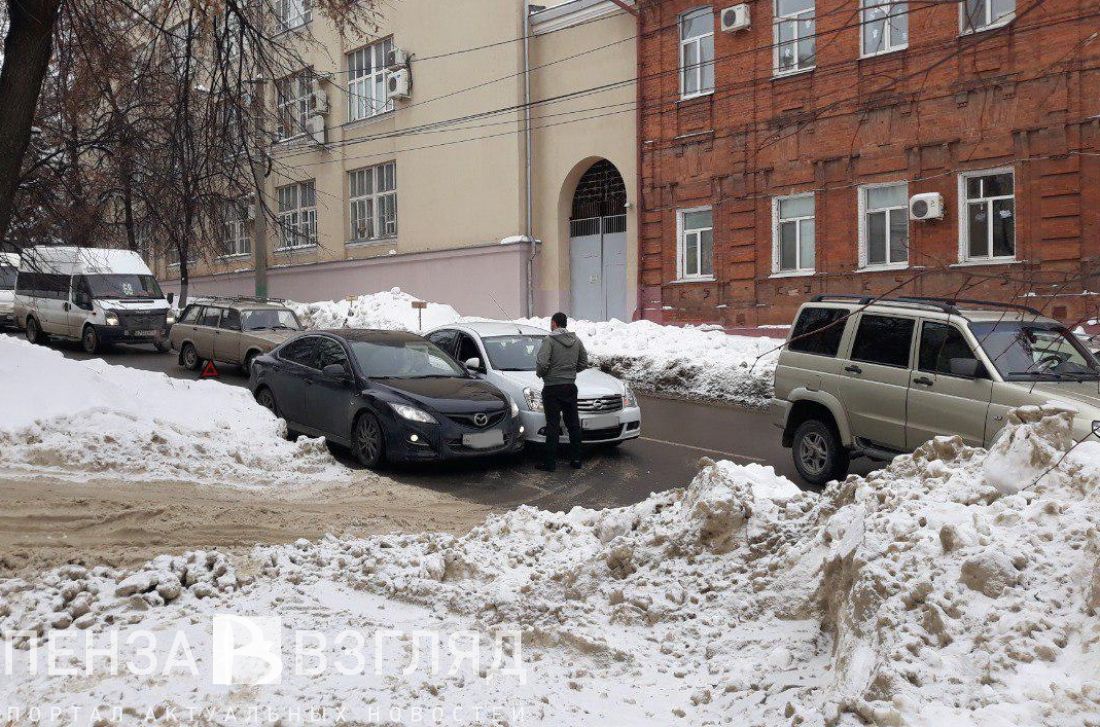 В Пензе две иномарки после аварии частично заблокировали дорогу