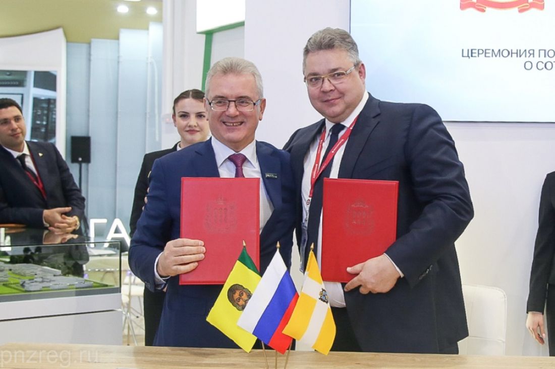 Губернаторы Пензенской области и Ставропольского края - Иван Белозерцев и Владимир Владимиров - поставили подписи под соглашением о торгово-экономическом, научно-техническом, социальном и культурном сотрудничестве. Главы регионов встретились на Российском инвестиционном форуме в Сочи, однако решение о принятии подобного документа было принято еще в феврале прошлого года, во время визита ставропольской делегации в пензенской регион.