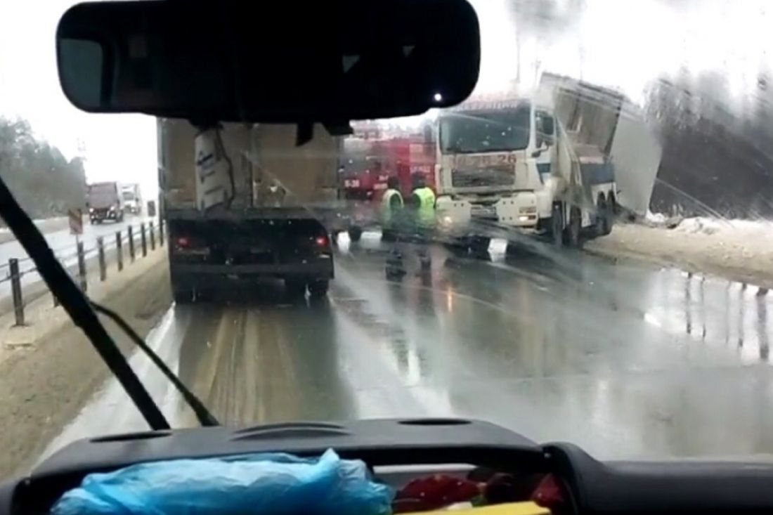 На 707-м километре трассы М-5 «Урал» случилось дорожно-транспортное происшествие с участием большегруза.