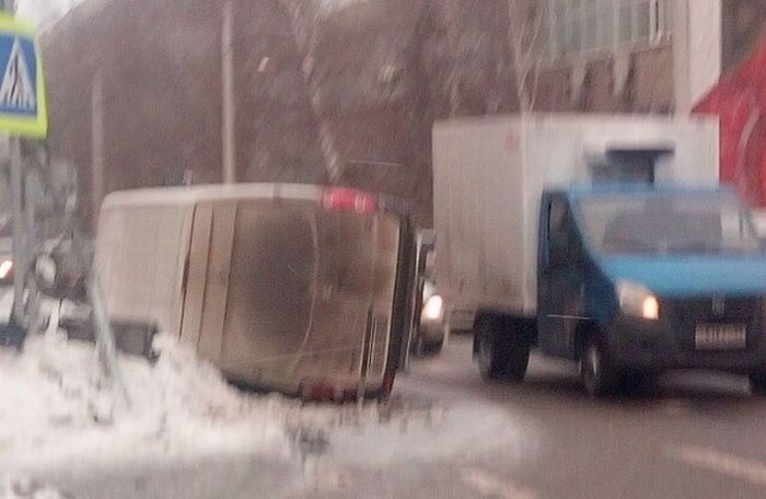 На перекрестке в Пензе после аварии с участием «Яндекс Такси» перевернулся минивэн. Фото