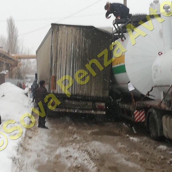 В Пензе случилось дорожно-транспортное происшествие с участием двух грузовых машин. Об аварии сообщил очевидец, он же опубликовал снимки с места ДТП в группе «Сова Пенза авто» социальной сети «ВКонтакте». Как сообщает местный житель, ДТП произошло в районе предприятия «Химмаш» по проезду Титова..