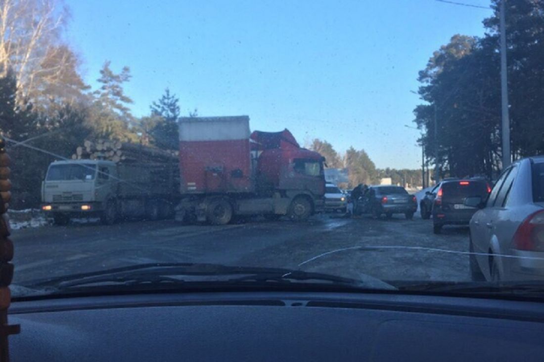В Пензе фура смяла дверь легковушки и перекрыла дорогу