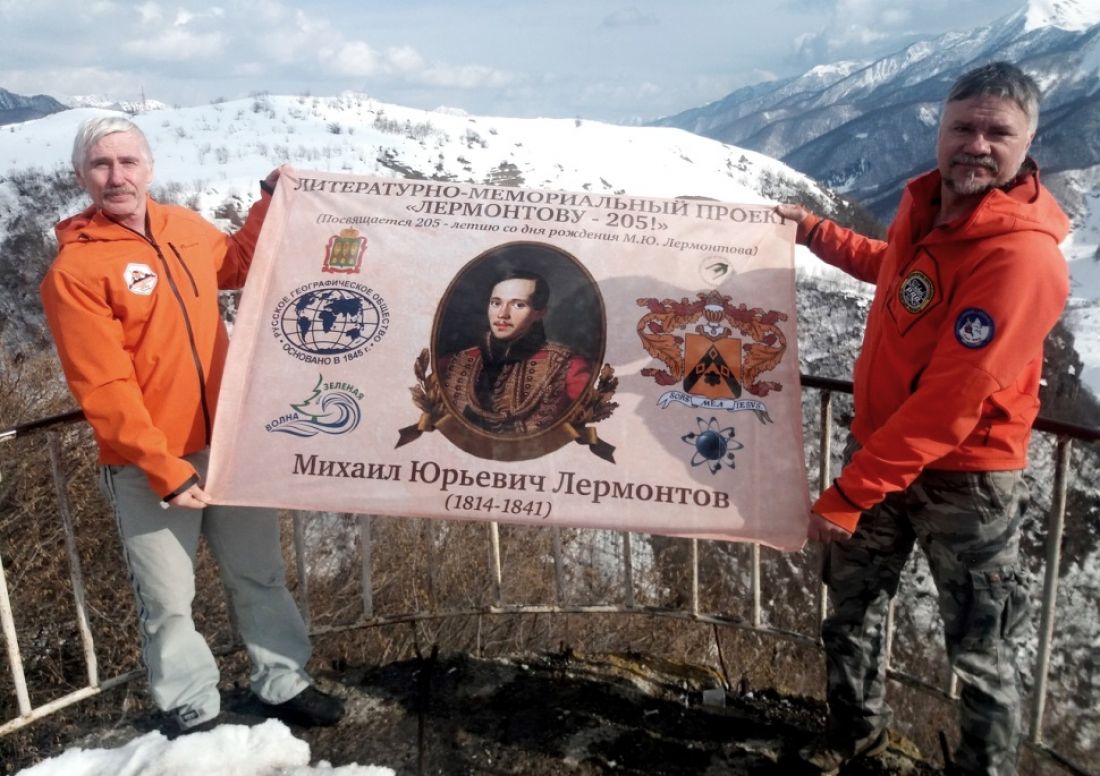 В мае-июне этого года Пензенские альпинисты, члены Русского географического общества Вячеслав Морозов и Александр Климов совершат горную экспедицию, посвященную 205-летию великого русского поэта Михаила Лермонтова. Ее итогом должно стать водружение флага с портретом Михаила Лермонтова на вершине Казбека.