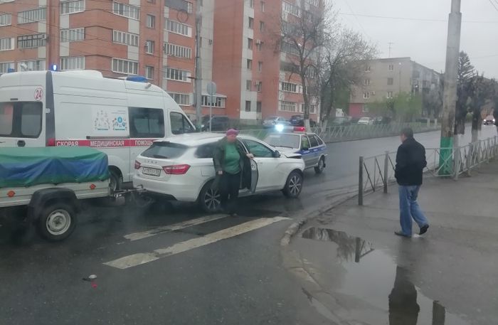 На снимке видно, что механические повреждения получил автомобиль «Лада Веста» белого цвета, у которого деформирован капот. Вторым участником ДТП очевидцы называют стоящую поодаль «Ниву». Ее водителя называют и виновником произошедшего, однако точные обстоятельства аварии предстоит установить сотрудникам Госавтоинспекции. На место прибыла также машина «скорой помощи».