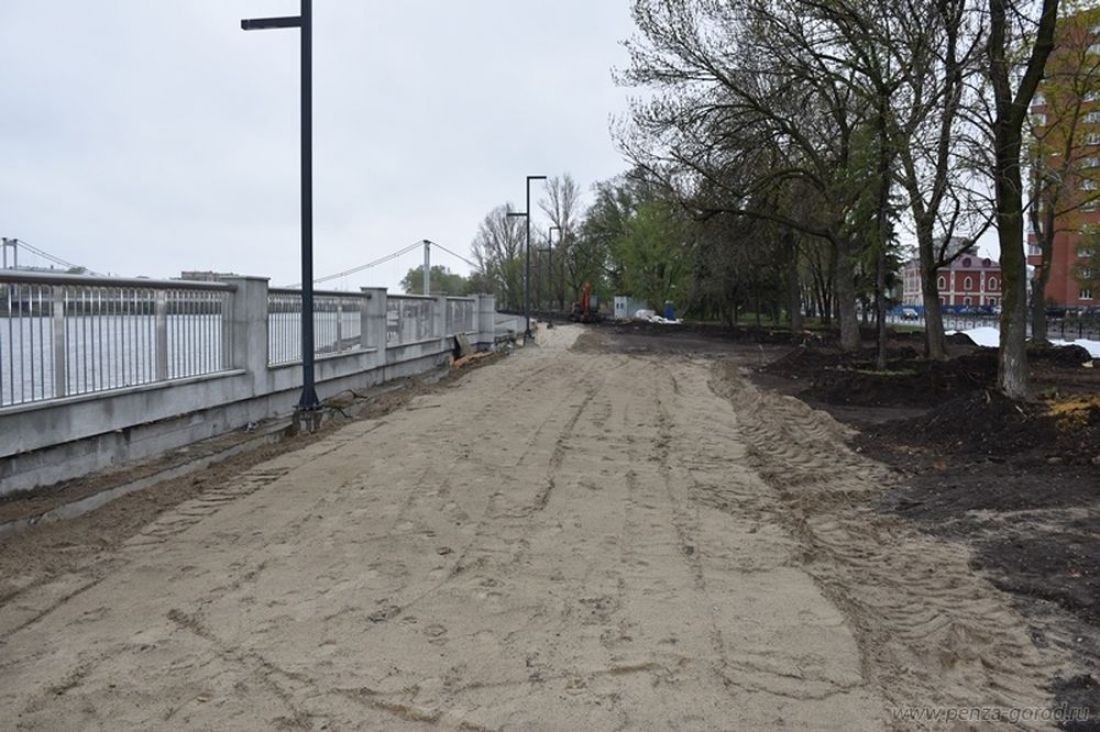 Сейчас рабочие производят выемку грунта, чтобы в дальнейшем здесь можно было обустроить верхнюю прогулочную зону. Она будет замощена, строители установят малые архитектурные формы, а также деревянные лежаки, на которых пензенцы смогут лежать и любоваться видом на реку.