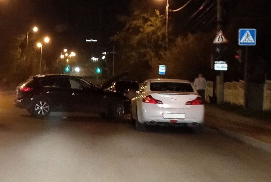 Столкнулись внедорожник и легковушка, причем внедорожник оказался строго перпендикулярно бордюру и, вероятно, протаранив другого участника дорожно-транспортного происшествия. Сообщений о пострадавших нет, машины получили механические повреждения. Обстоятельства аварии установят сотрудники ГИБДД.