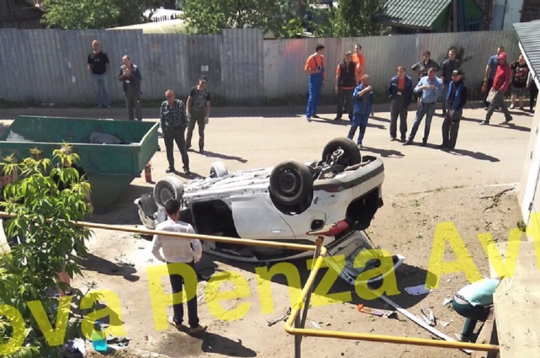 В Пензе «легковушка» вылетела с моста и упала на крышу
