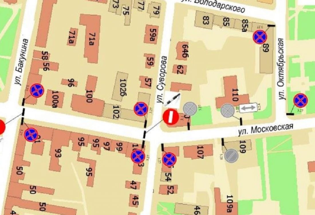 По улице Московской от улицы Бакунина до улицы Суворова с 22 часов 27 мая до 11 часов 28 мая будет прекращено движение транспорта.