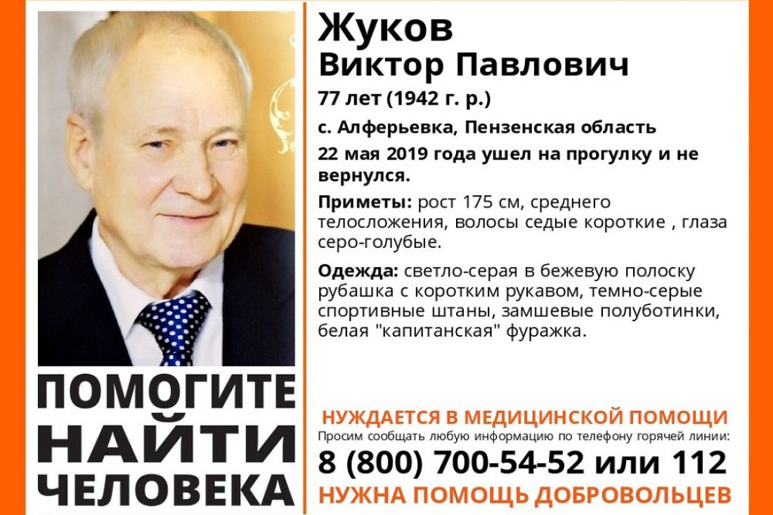 25 мая 2019 года в группе «Лиза Алерт Пенза» социальной сети «ВКонтакте» появилось тревожное сообщение под ориентировкой об исчезнувшем 77-летнем дедушке из села Алферьевка Пензенской области.