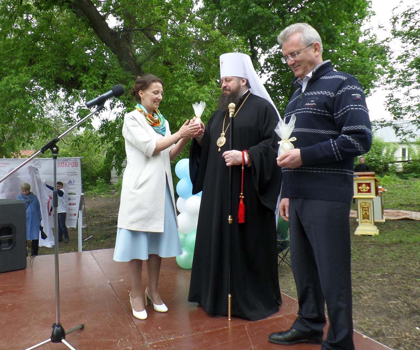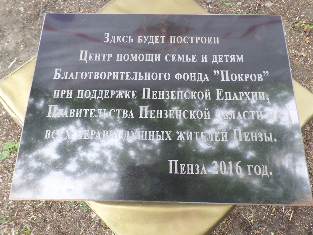 Собравшимся продемонстрировали памятную табличку с надписью «Здесь будет построен Центр помощи семье и детям». В завершение торжественной церемонии митрополит Серафим освятил участок земли, на котором уже в ближайшие дни начнутся строительные работы.