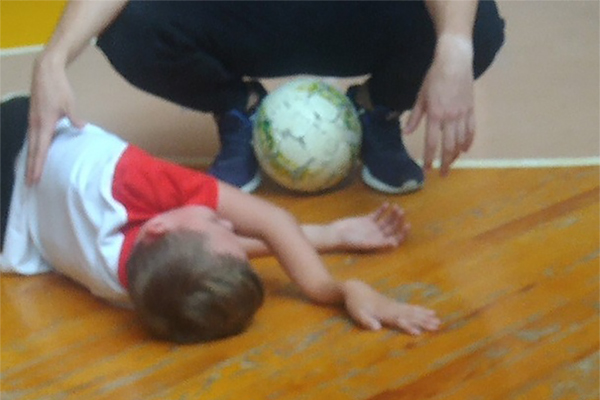 Мальчик неудачно упал во время игры в футбол.