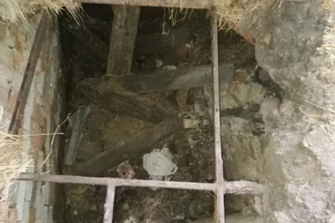На кадрах запечатлена крыша надворной постройки и сама яма. Она довольно глубокая, а на дне ее лежат деревянные доски, на которые, судя по всему, и бросили мужчину.