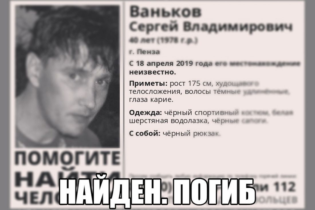 Пропавший в апреле 40-летний пензенец найден погибшим