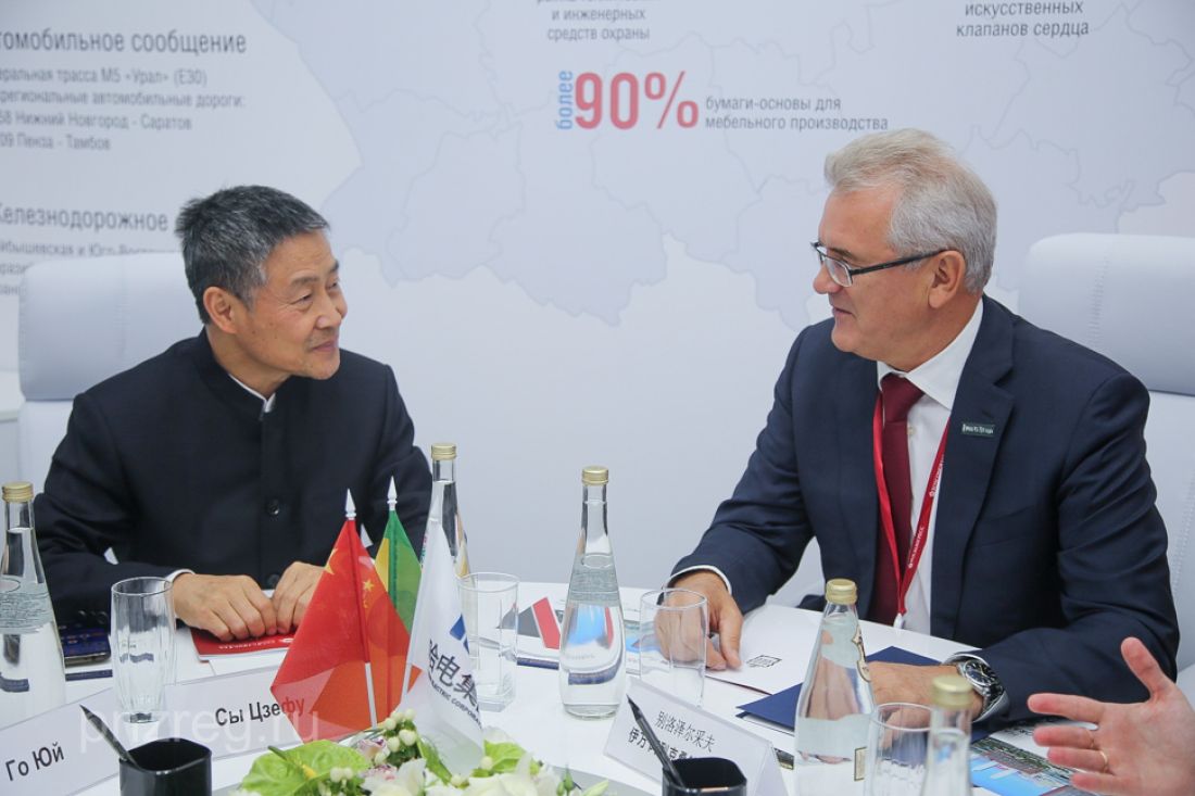 В рамках Международного Петербургского экономического форума губернатор Пензенской области Иван Белозерцев обсудил вопросы сотрудничества с председателем «Харбинской электрической корпорации» Сы Цзефом.