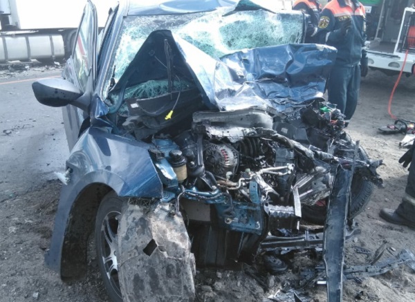 Судя по фотографиям, легковая машина получила серьезные механические повреждения – передняя часть раздроблена в клочья, колесо вывернуто в другю сторону, лобовое стекло сильно помято, повсюду на асфальте валяются многочисленные запчасти. Также видно, что на месте работали спасатели и сотрудники Госавтоинспекции. Последним предстоит установить все обстоятельства и причины ДТП.