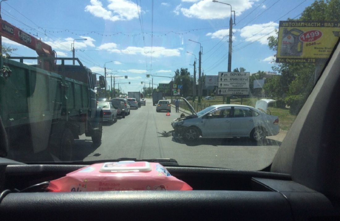 На Южной поляне в Пензе легковушка с искореженным кузовом встала посреди дороги
