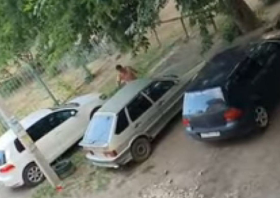 В Пензе совершенно голый дебошир ходил по двору и громил машины. Видео (18+)