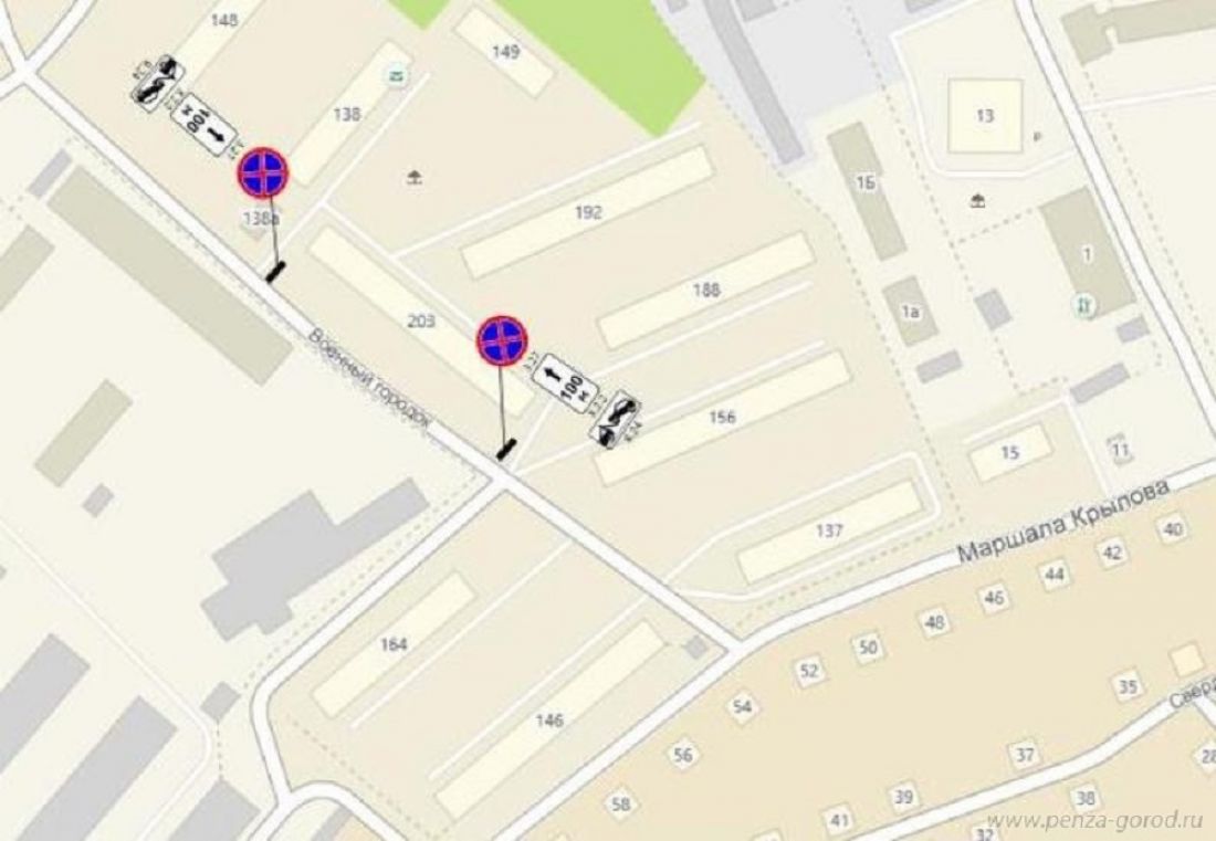 В Пензе на улицах Славы и Военный городок в районе жилого дома №203 планируется установить запрещающие знаки 3.27 «Остановка запрещена» с табличками дополнительной информации.