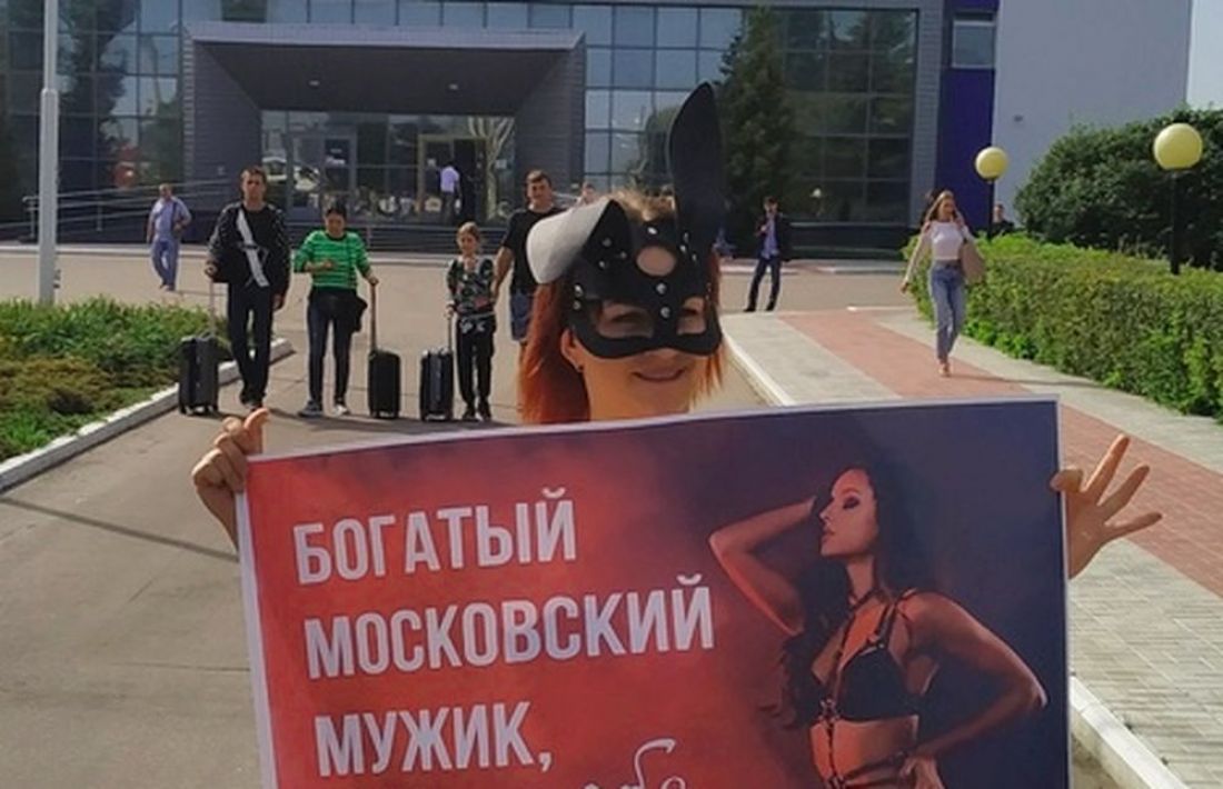 1. Необычная дама удивила нестандартным поведением прибывавших и отправлявшихся из пензенского аэропорта. Полуобнаженная, с маской и кроличьими ушками в стиле «playboy», она держала в руках плакат, на котором красовалась требовательная надпись: «Богатый московский мужик, жду тебя сегодня».
