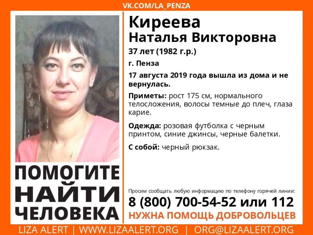 В Пензе пропала 37-летняя женщина. Наталья Киреева вышла из дома 17 августа и не вернулась, и до сих пор у родственников нет информации о ее местонахождении.