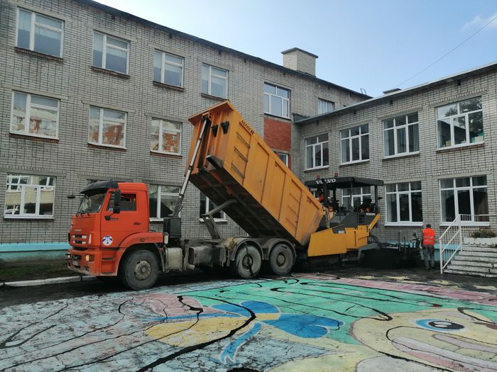 В работе по замене асфальта активное участие приняла депутат Заксобра Юлия Лазуткина, на избирательном участке которой располагается школа. Помимо центральной части двора, был запланирован ремонт пешеходных дорожек. Бригады приступили к работе в последние дни сентября: сняли старый слой асфальта, выровняли и просушили поверхность, которую пролили жидким битумом. За один день уложили покрытие толщиной 4 сантиметра на площади 800 квадратных метров. При этом качество работы контролировали как педагоги, так и родители с депутатами.