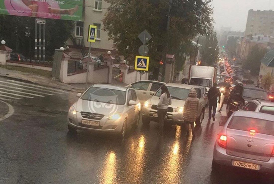 Сложная транспортная ситуация стала еще хуже после того, как в центре Пензы столкнулись легковые автомобили «Kia Ceed» и «Toyota Rav 4». Снимок с места аварии был опубликован в группе «Сова Пенза авто» социальной сети «ВКонтакте».