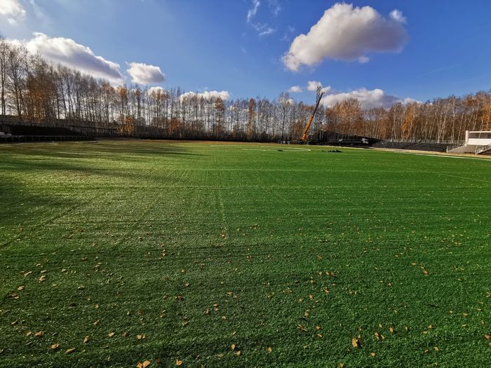 Работы здесь близятся к завершению: выполнено покрытие футбольного поля, подключается искусственный подогрев, благоустраиваются трибуны. Сообщается, что играть и тренировать на обновленном стадионе каменский «Дорожник» сможет уже в конце октября.