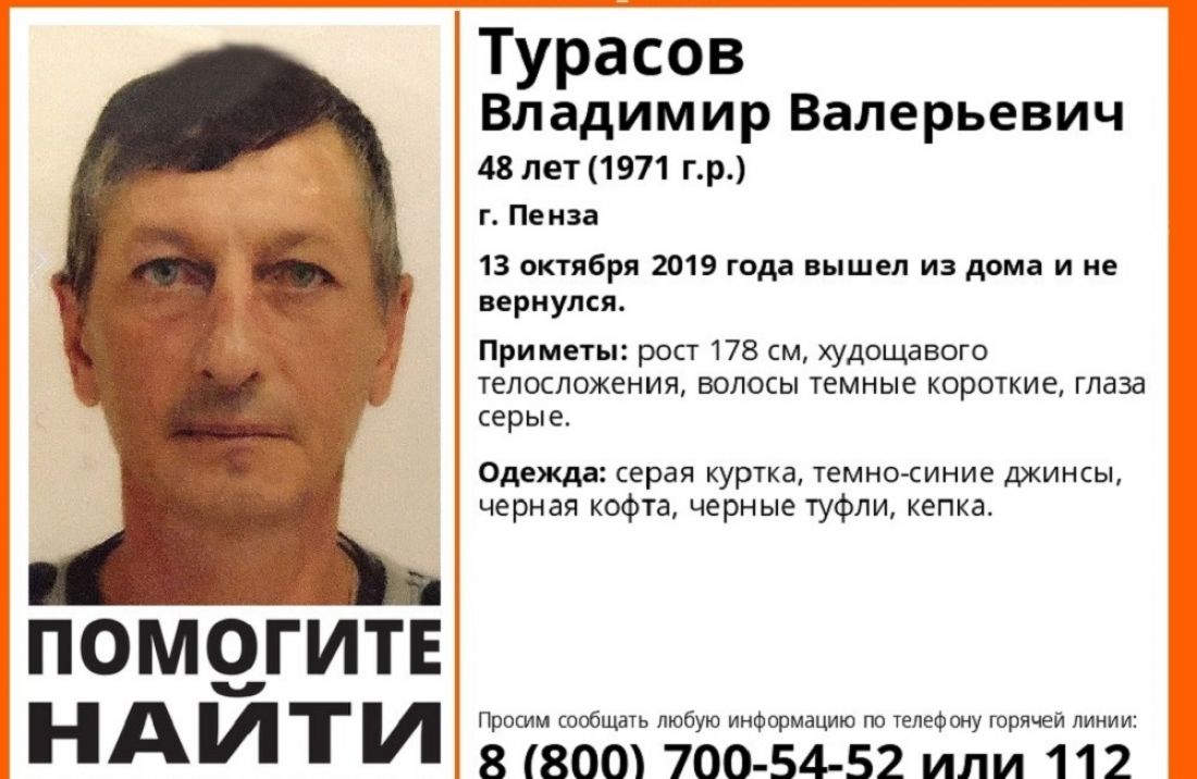 48-летний житель Пензы Владимир Турасов 13 октября вышел из дома и не вернулся. Информация об этом появилась в группе пензенского отделения поисково-спасательного отряда «Лиза Алерт».
