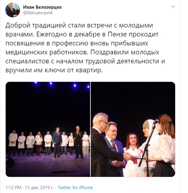 Поздравить новоиспеченных медиков пришли спикер Заксобра Пензенской области Валерий Лидин и губернатор Иван Белозерцев. Глава региона рассказал об этом в своем микроблоге.