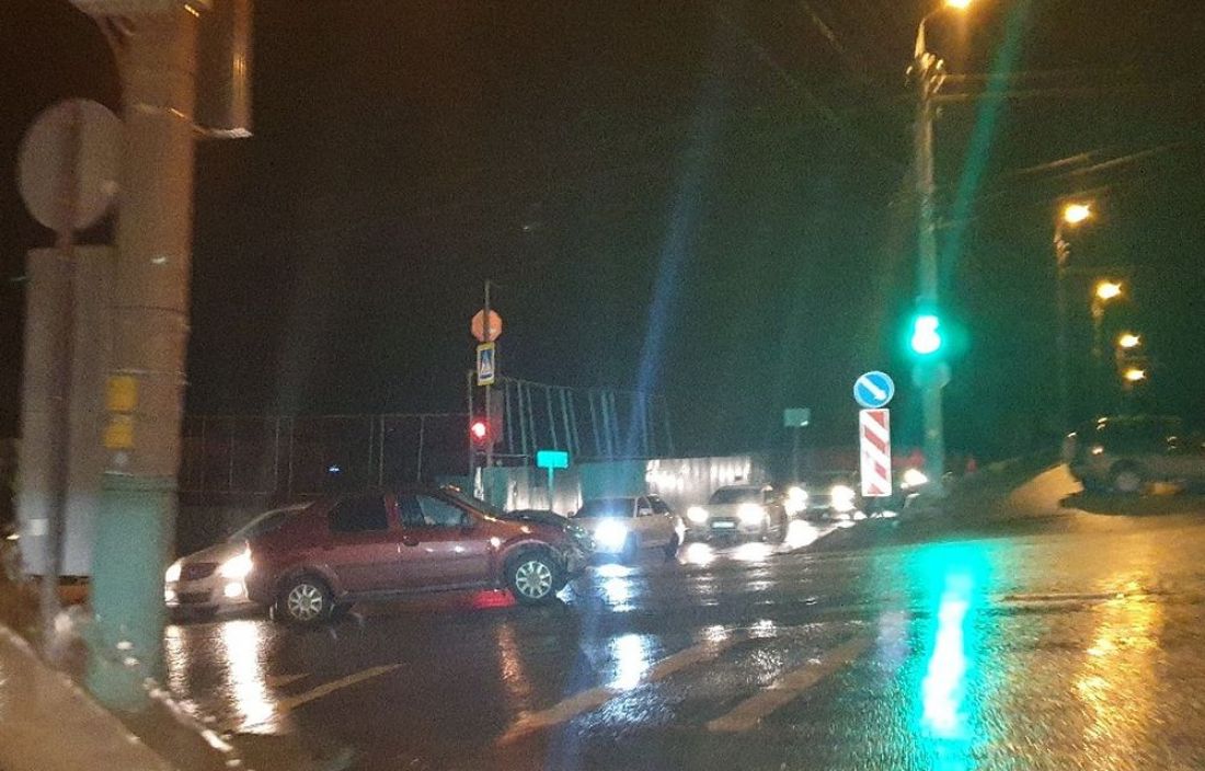 В Пензе столкнувшиеся автомобили заняли половину перекрестка.