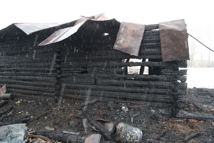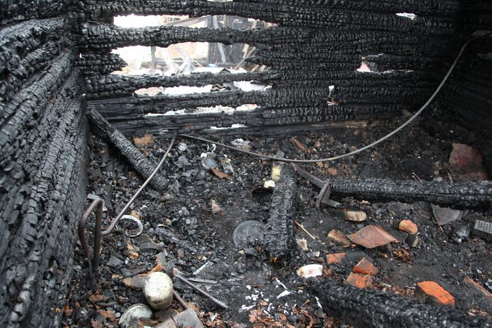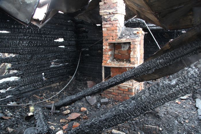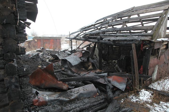 Региональное управление Следственного комитета, чьи сотрудники прибыли на место трагедии, опубликовало фотографии пепелища, в которое превратился некогда жилой деревянный дом.