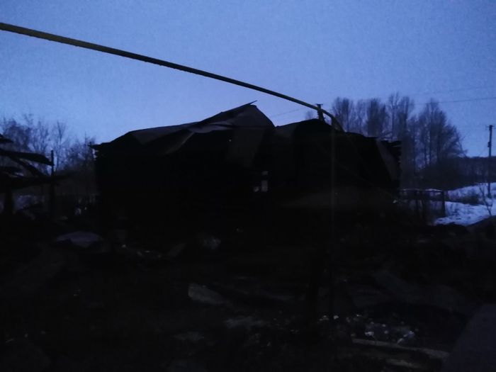 Стены строения устояли, однако крыша провалилась внутрь и погребла под собой жильцов.