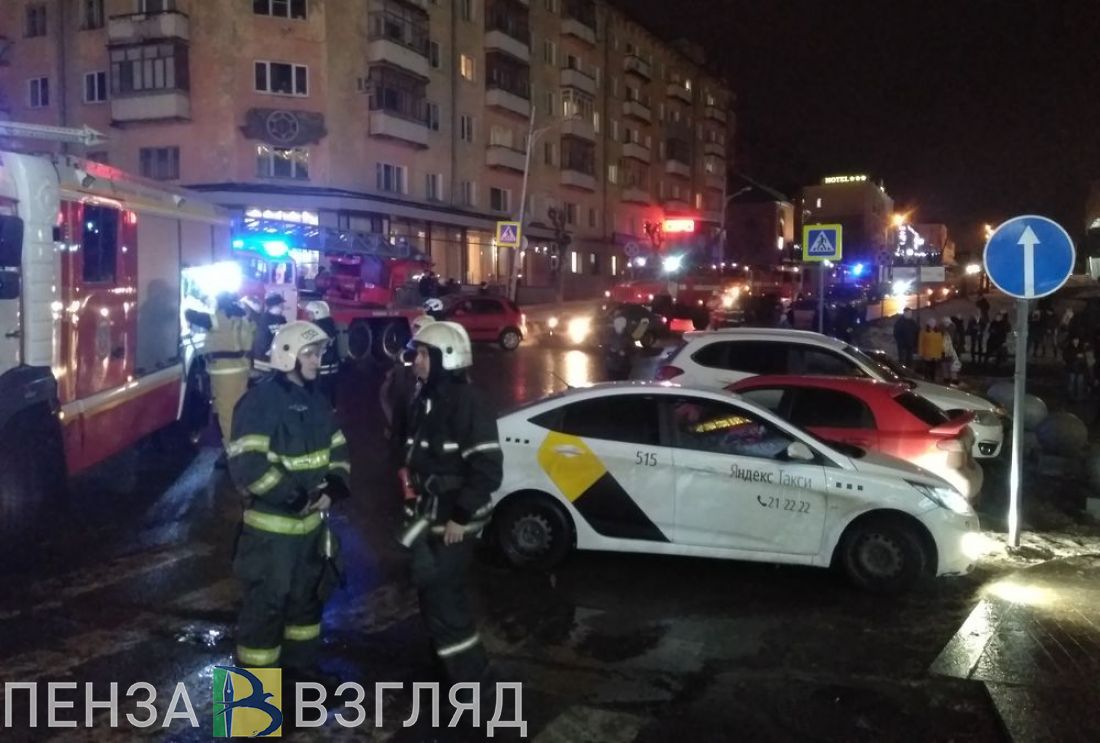 На улицу Кураева в Пензе вечером по сигналу пожарной тревоги съехалось более десятка расчетов.