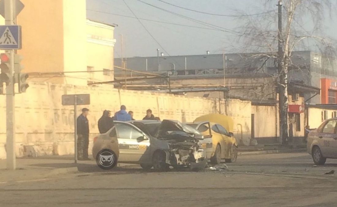 На улице Металлистов в Пензе в аварии раскромсало машину такси