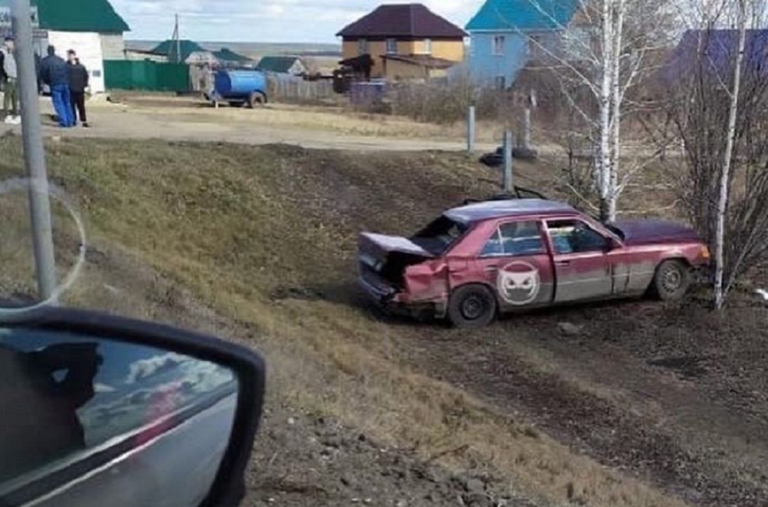 Под Пензой легковушка с серьезными повреждениями оказалась в кювете