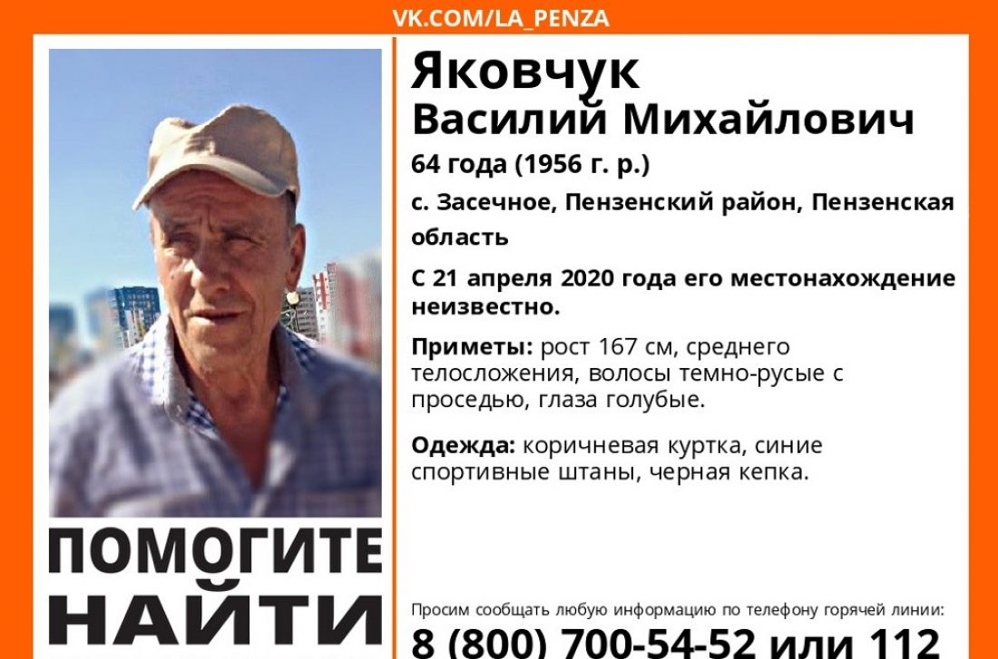 В группе пензенского поисково-спасательного отряда «Лиза Алерт» появилось сообщение об исчезновении 64-летнего жителя села Засечное Василия Яковчука.