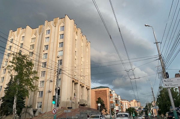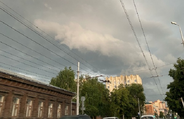 На областной центр сначала зловеще надвигались темные тучи, после чего пошел дождь.