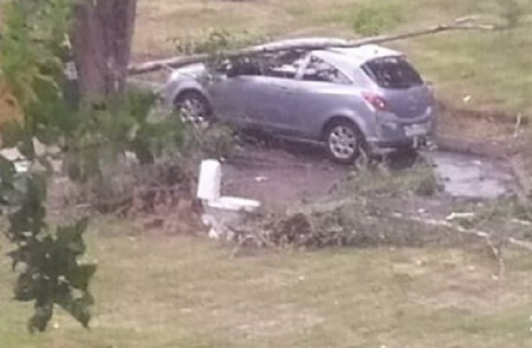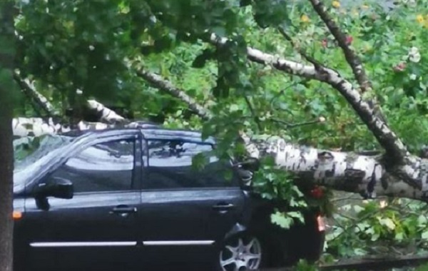 На улице Тиражной на проезжую часть упало дерево - пострадала одна машина.