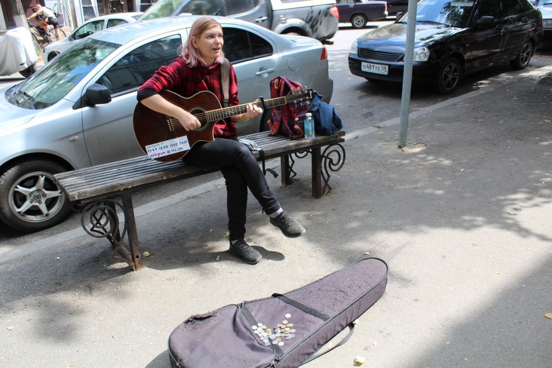 Музыканты на Московской переходят на безналичный способ оплаты своих талантов.