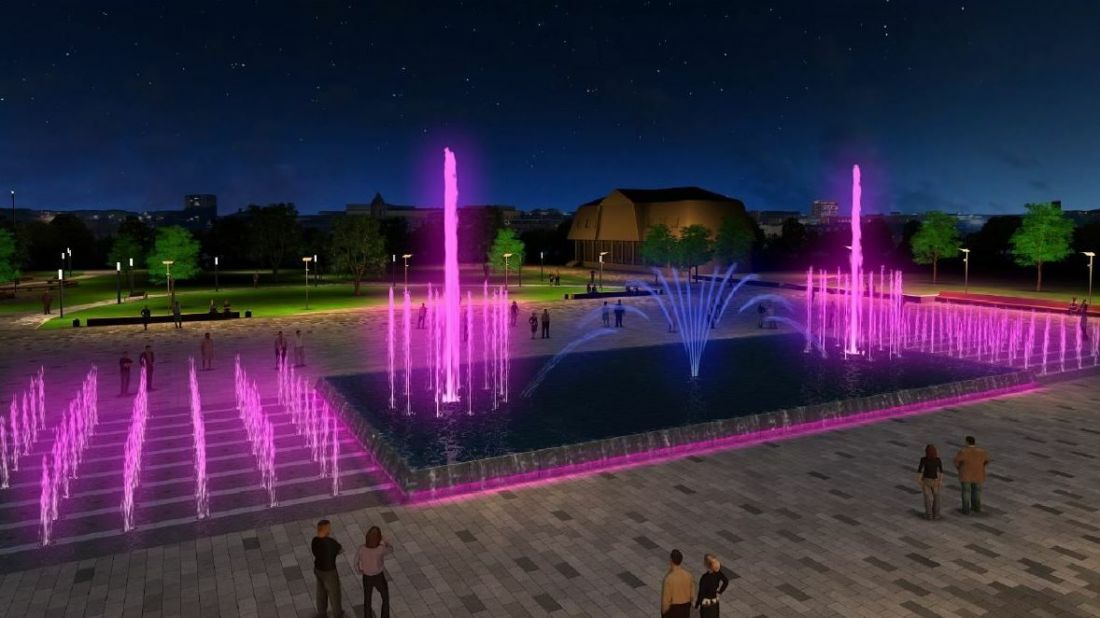 Напомним, новый фонтан представляет собой сооружение прямоугольной формы размером 53*13,4 метров. В состав сооружения входят: чаша фонтана с зеркалом воды площадью 359,0 кв.м.; пешеходная часть площадью 356,0 кв.м.; водная картина фонтана создается 263 насадками высотой до 20 метров.