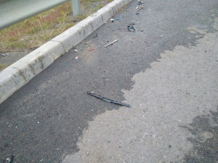 На обочине остались лишь некоторые детали – дворник, остатки разбитых стекол и нечто, напоминающее куски колесных дисков.